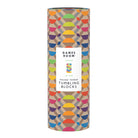 A beautifully designed update to this classic game, this bright box is filled with 54 wooden blocks in two different shapes (rectangular and semi-circular) that build a circular tower-looks as good displayed on a shelf as it does on your table!