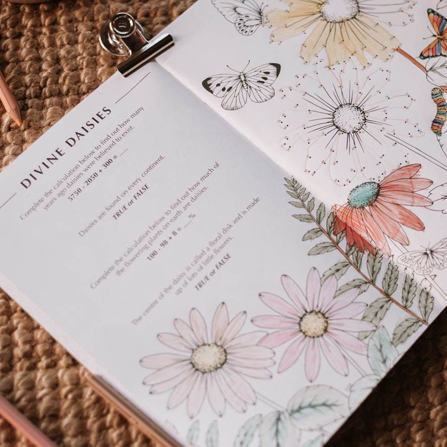 Packed with all your most loved activities, this book will keep the kids entertained for hours! With stunning illustrations on every page, this nature inspired activity book is a wonderful companion for travelling, car trips and school holidays. Inside you'll find 120 pages of: Mazes Crosswords Detailed colouring pages Word finds Step-by-step instructions for how to draw common natural treasures Spot the difference Crack the code Dot to dots Eye spys and more! Suitable for children who can read and write, as well as younger children with the assistance of a grown up.