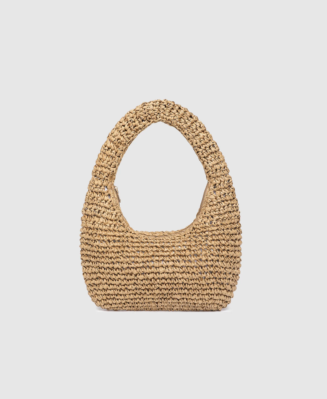 The Nellie Natural Raffia Shoulder Bag captures the carefree charm of a coastal summer, blending natural texture with refined design. This lightweight woven handbag is crafted from dark, natural raffia in a softly sculpted crescent silhouette - made for breezy days and golden hour strolls. Light gold hardware adds a polished finish, while a secure zip closure keeps your essentials safe from brunch to beach club. Designed to sit comfortably under the arm, this raffia handbag brings a touch of laid-back luxury to any look. Whether paired with a linen set or a flowing sundress, Nellie Natural Raffia is the perfect companion for long lunches, market mornings, and everything in between.