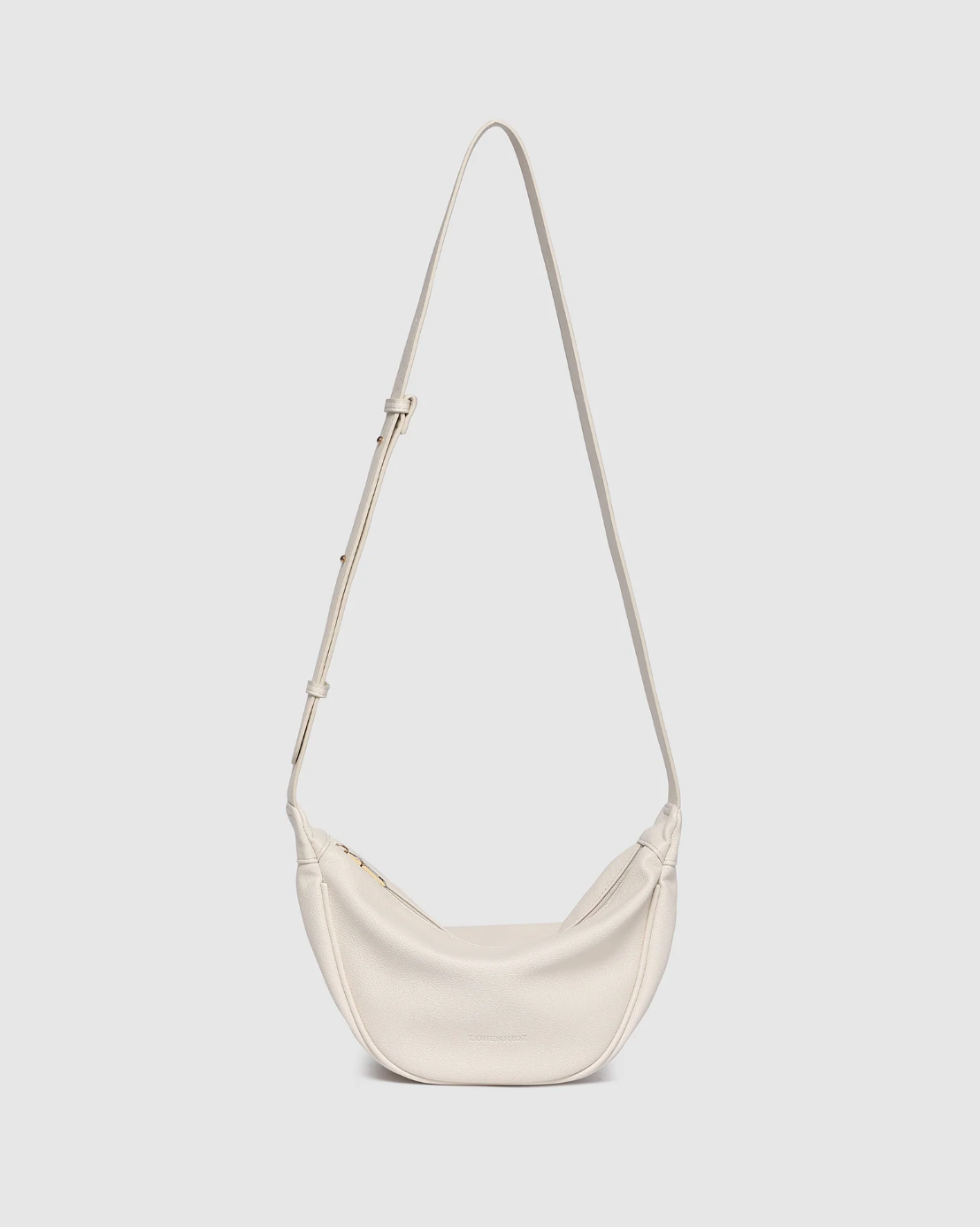 The Sylvia Vanilla Crossbody Bag is an on-trend style, featuring a modern crescent silhouette and an all new soft, vegan leather texture. From sunnies to car keys, you can conveniently organise your daily essentials in the two internal slip pockets without compromising on style. The neutral hue and light gold hardware detailing effortlessly elevates your minimal aesthetic. Crafted with comfort in mind, the adjustable sateen webbing guitar strap ensures you can customise the fit to your liking. Whether you're grabbing a coffee with the girls, hitting the city streets, or embarking on a shopping spree, the Sylvia Vanilla is the perfect casual crossbody bag to elevate your look.