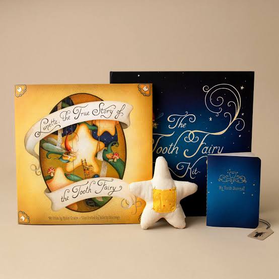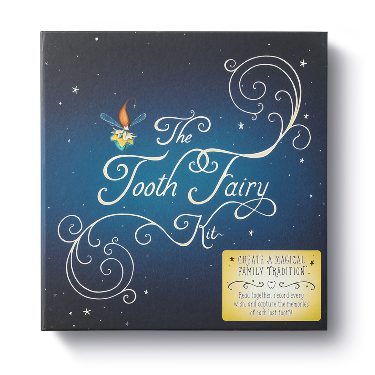 In addition to a beautifully illustrated book that tells the true story of the Tooth Fairy, this kit includes a star pillow with a small pocket for holding teeth and treasures, and a keepsake journal to record and remember the adventure of each lost tooth.
