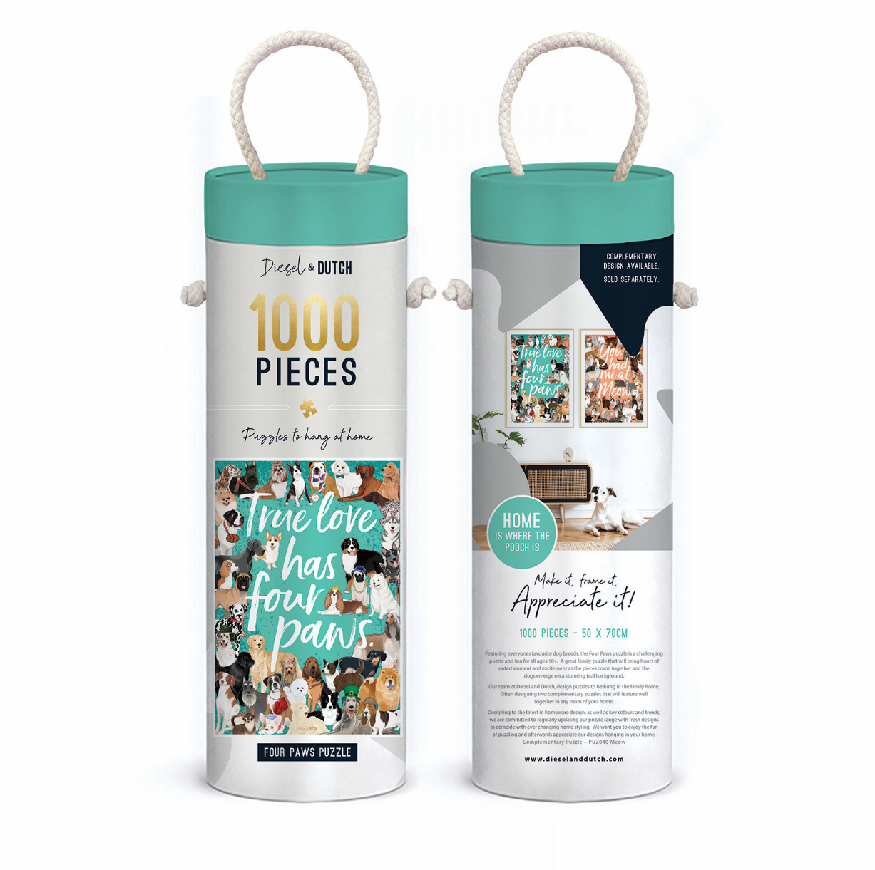 Featuring everyone's favourite dog breeds, the Four Paws puzzle is a challenging puzzle and fun for all ages 10+. A great family puzzle that will bring hours of entertainment and excitement as the pieces come together and the cats emerge on a stunning teal background.