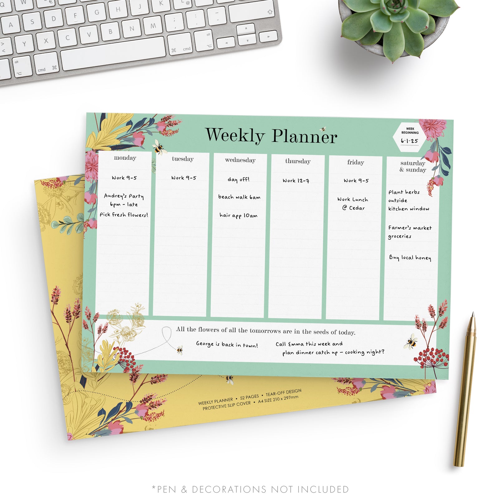 Affirmations Bee Desk Planner. 210 x 297 mm. 52 pages. Desk planner pad with tear-off pages and protective removable cover.