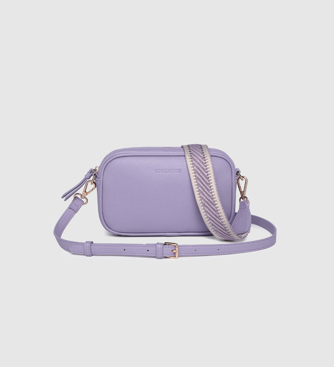 The Bianca Lilac Crossbody Bag is a stylish yet practical companion, thoughtfully crafted for life on the move. This women’s crossbody bag features a compact, camera-style silhouette that combines everyday functionality with timeless appeal. Made from buttery soft vegan leather and finished with light gold hardware, Bianca Vanilla brings a polished touch to casual styling. As a travel-friendly crossbody, she’s lightweight and easy to wear, with two interchangeable strap options: a bold logo webbing guitar strap for statement appeal, or a matching adjustable vegan leather strap for a more refined look. A secure zipper handbag by design, Bianca Vanilla keeps your essentials safe and within easy reach. Inside, you’ll find two internal pockets to keep your valuables organised and close at hand. Effortlessly versatile, she is the hands-free essential that keeps up with you from daily errands to weekend escapes.