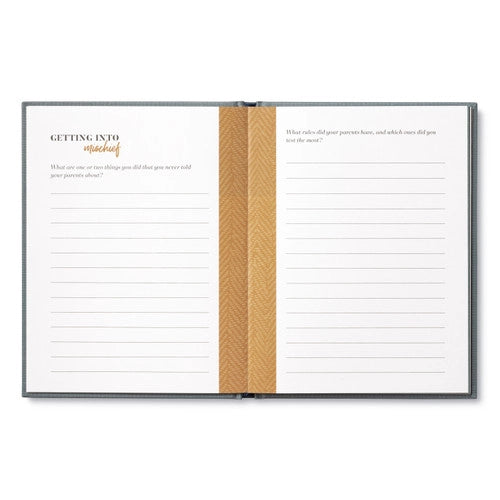 Inside are meaningful questions for Dad to answer — about his childhood, his family, his accomplishments, and his wishes. When complete, this book will become a treasure trove of love and lessons that can be enjoyed for generations.