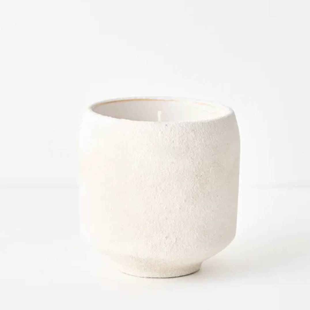 This hand-poured, textured wax candle in a Lexi pot emits a soothing fig scent, housed in a stylish, cloud-shaped ceramic container. Perfect for adding a touch of elegance and tranquility to any space.