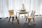 This table and chair set is sure to be the centrepiece in a bedroom, playroom or lounge room. The table features white accents, a hidden compartment to store crayons and a chalkboard central panel. It also comes with the sweetest woodland animal accent chairs. One bear themed and the other bunny themed.