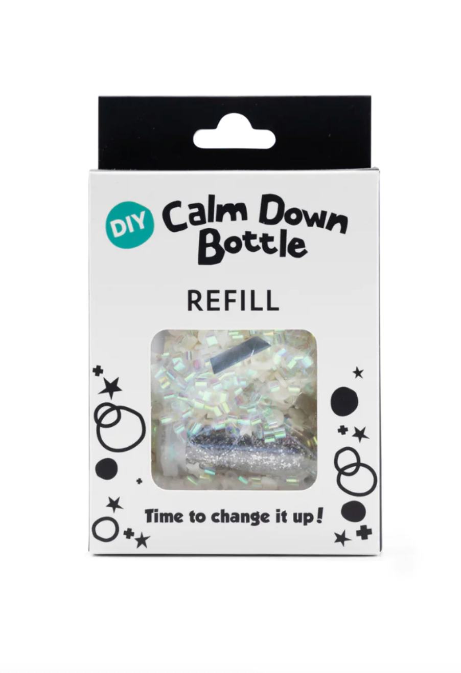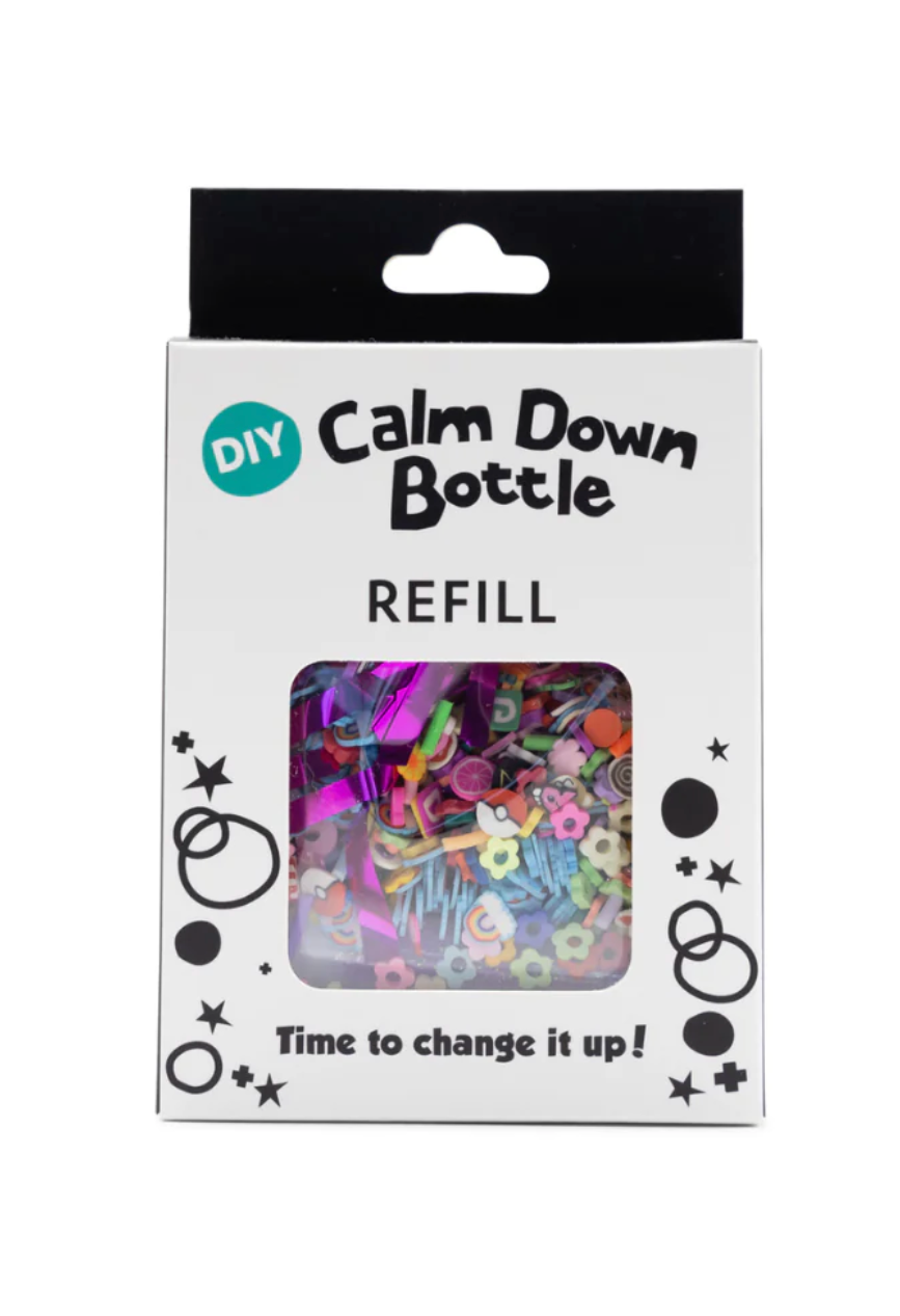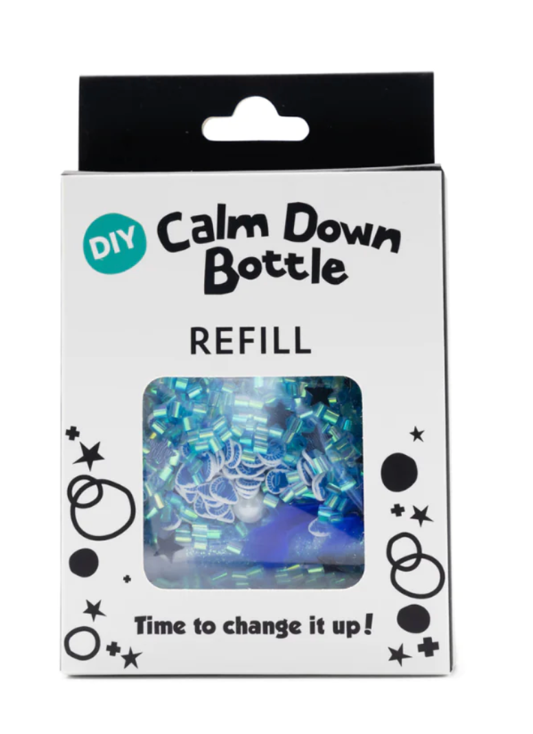 Refill and reuse your DIY Calm Down Bottle with these unique refill packs. Each with a different theme, these refill packs come with glitter and crafts for your little one to create your very own sensory bottle.