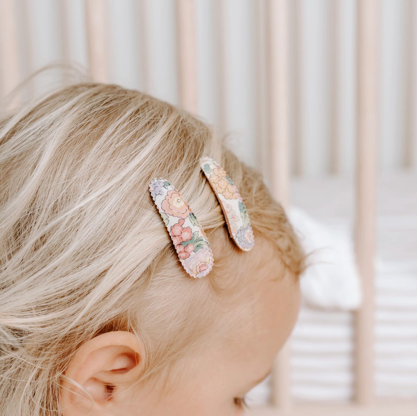 Sold in sets of two these timeless hair clips are finished using a range of Liberty London prints along with a selection of fabrics designed by The Rifle Paper Co.