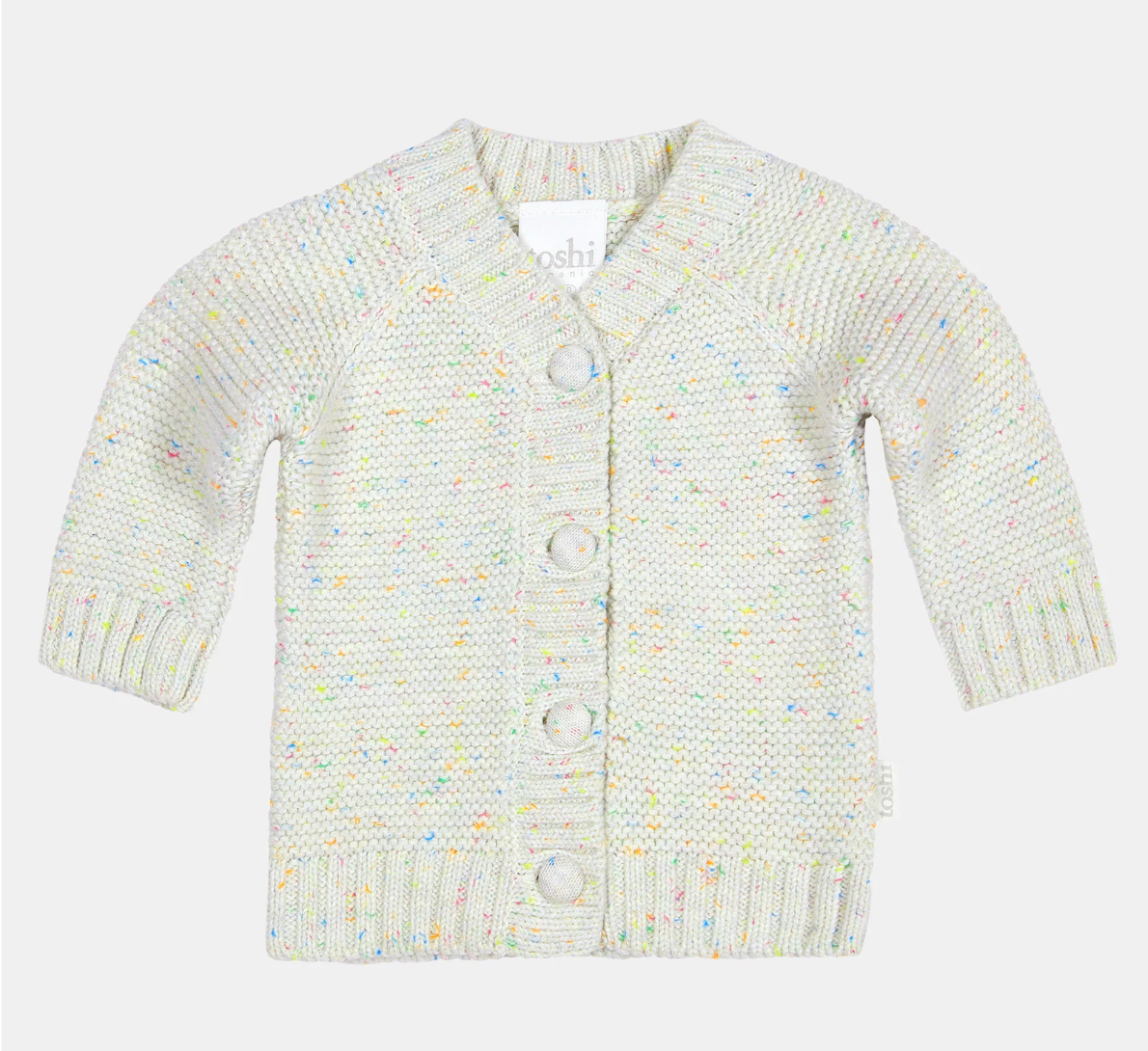 The sumptuously soft Toshi Organic Baby Cardigan Andy is crafted from the finest quality certified 100% organic cotton yarn. Organic certification ensures the cardigan is gentle on your delicate baby, as well as our precious environment. A melange yarn offers a level of refinement to this cosy and nurturing Toshi baby accessory. With a textured reverse knit and covered buttons, the styling is classic and yet the feel is contemporary. Cardigan Andy is designed to keep precious babies warm and cosy during our cooler months.