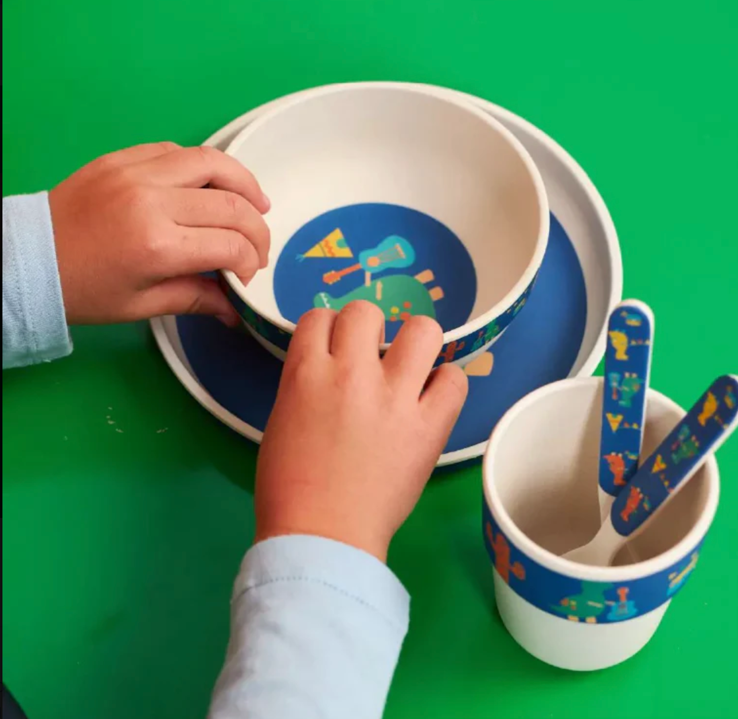 In goes the aeroplane! Our Bamboo Mealtime Set is more durable than ceramic or glass, and more eco-friendly than plastic. It’s made from bamboo fibre which is tough yet lightweight, making it safer and easier for little ones who like to cart their snacks around the house.