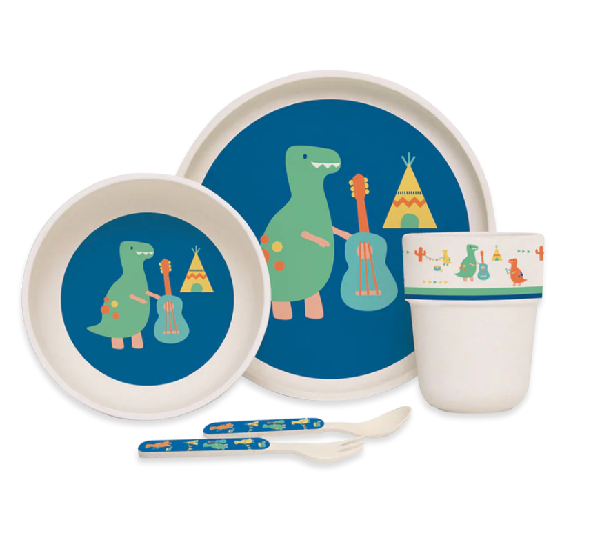 The adorable designs inside the bowl and plate keep littlies interested in their meal — and the matching fork, spoon and cup are a great way to help babies transition from bottles and purees to solids.
