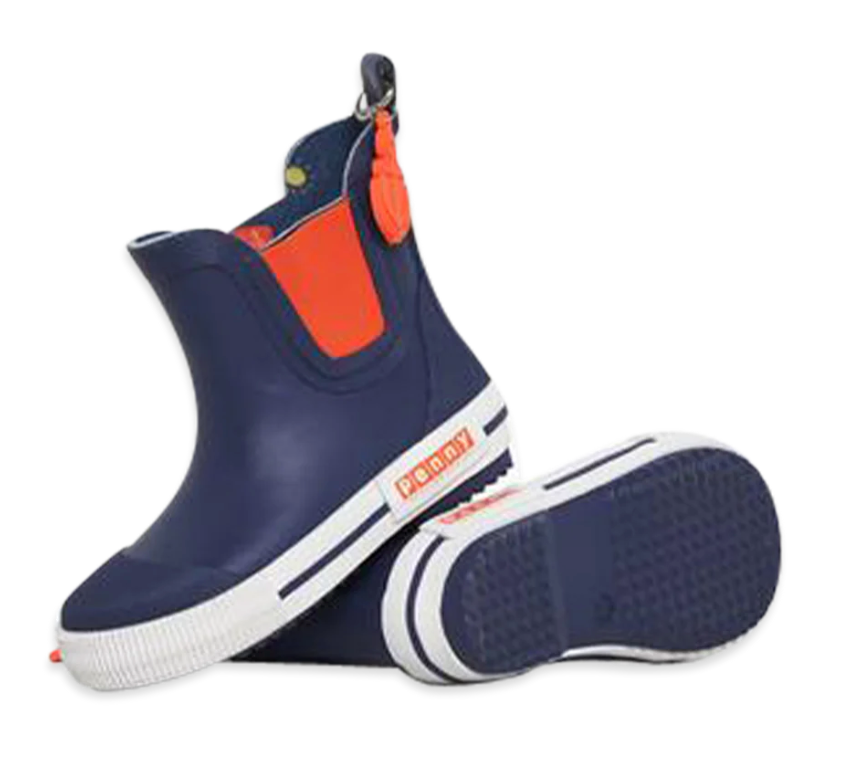 It’s raining, it’s pouring! Let your little one splish and splash to their heart’s content with our adorable and practical Dino Rock rubber boots for kids! They’re made from pure rubber with slip-resistant soles, a toe guard, and a 100% cotton lining in an adorable Penny Scallan print. A matching silicone charm doubles as a name tag so you can tell whose is whose. We have matching raincoats and umbrellas for all our gumboots — the perfect way to brighten a grey day! For more of the best toddler gumboots, check out our inventory at Penny Scallan!