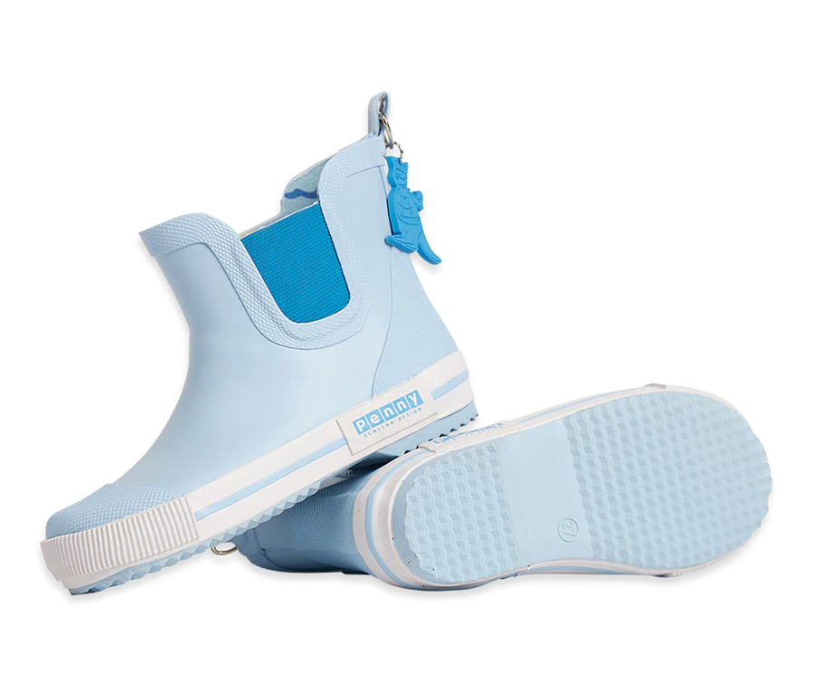 It’s raining, it’s pouring! Let your little one splish and splash to their heart’s content with our adorable and practical Dino Rock rubber boots for kids! They’re made from pure rubber with slip-resistant soles, a toe guard, and a 100% cotton lining in an adorable Penny Scallan print. A matching silicone charm doubles as a name tag so you can tell whose is whose. We have matching raincoats and umbrellas for all our gumboots — the perfect way to brighten a grey day! For more of the best toddler gumboots, check out our inventory at Penny Scallan!