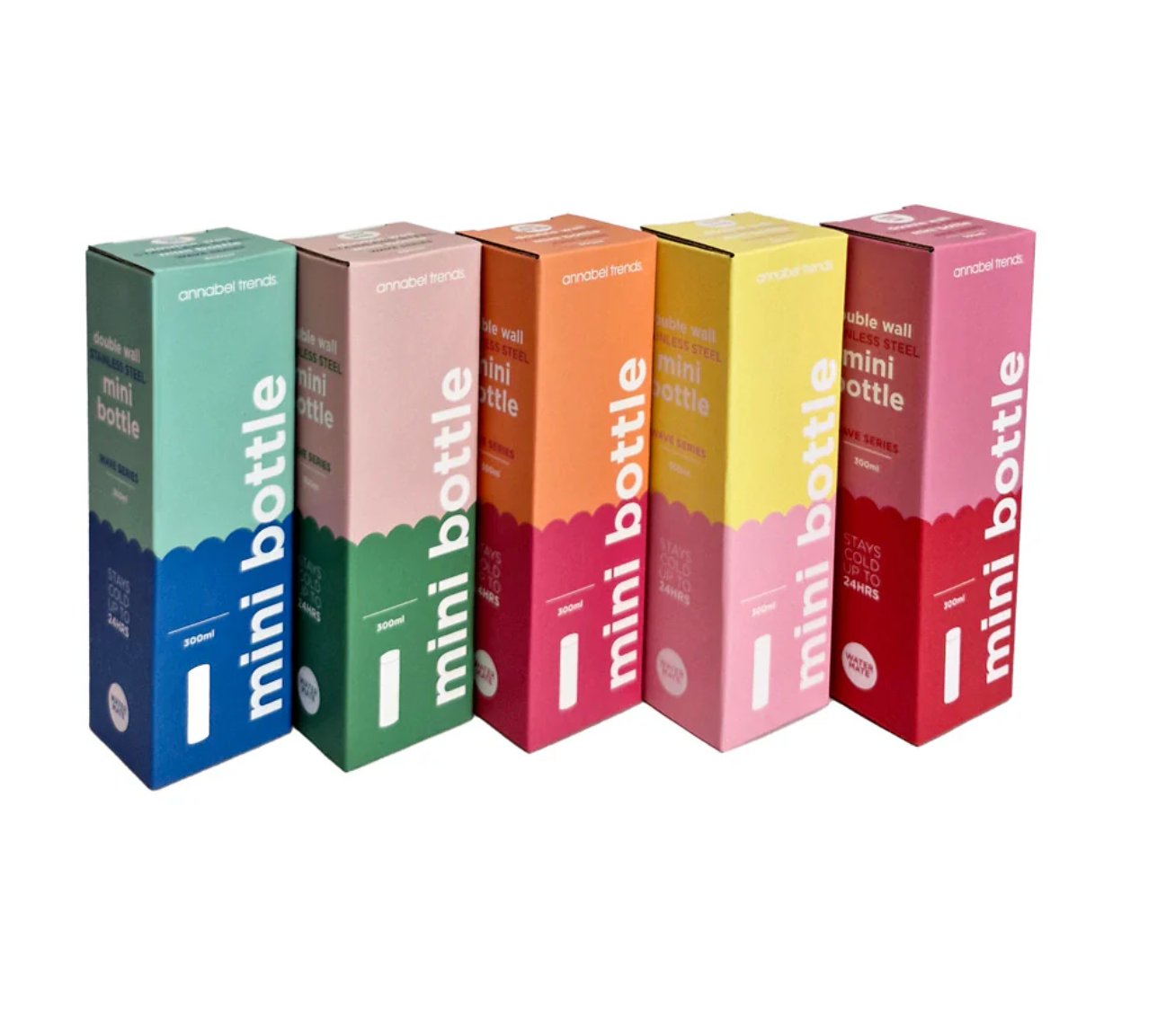 Stay hydrated on the go with our latest addition to the Double Walled Stainless Steel drink bottle range, the Annabel Trends Mini Bottle. At a compact 300ml, these bottles are the perfect size for your handbag or the kid's backpack. The double wall insulation keeps your beverages cold for up to 24hours. These bottles are also suitable for hot beverages, making it a versatile, all-purpose option for all your beverage needs. Match back with the whole range of Wave edition Stainless Steel drinkware.