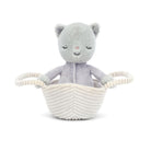 Features Sleepy sitched eyes and cuddly cordy bed.