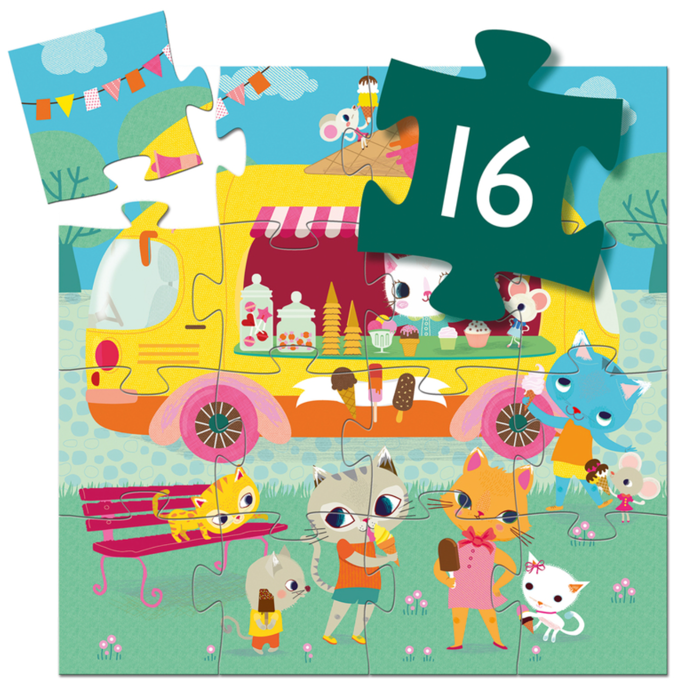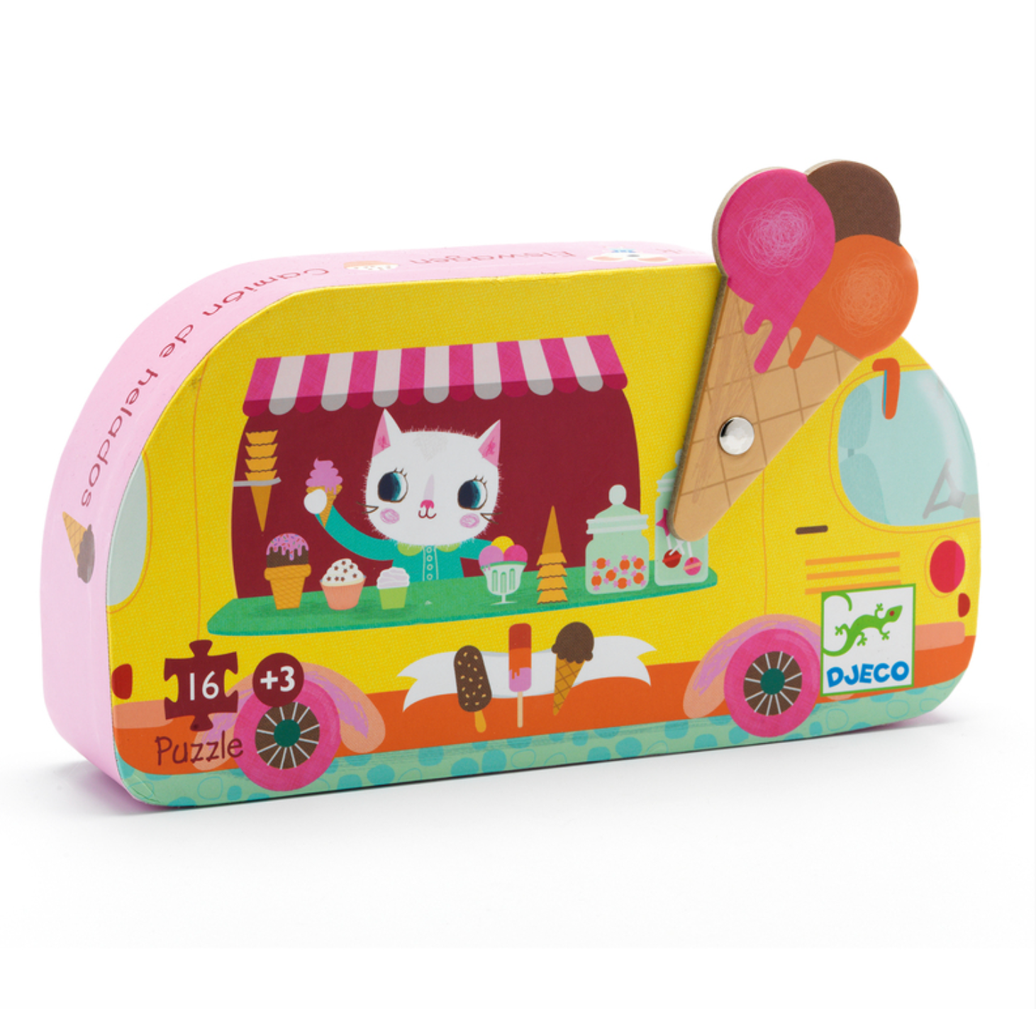 Children are going to be spoilt this year. This 16 piece puzzle comes in a small ice cream truck silhouette box with moveable features. A perfect summertime puzzle.