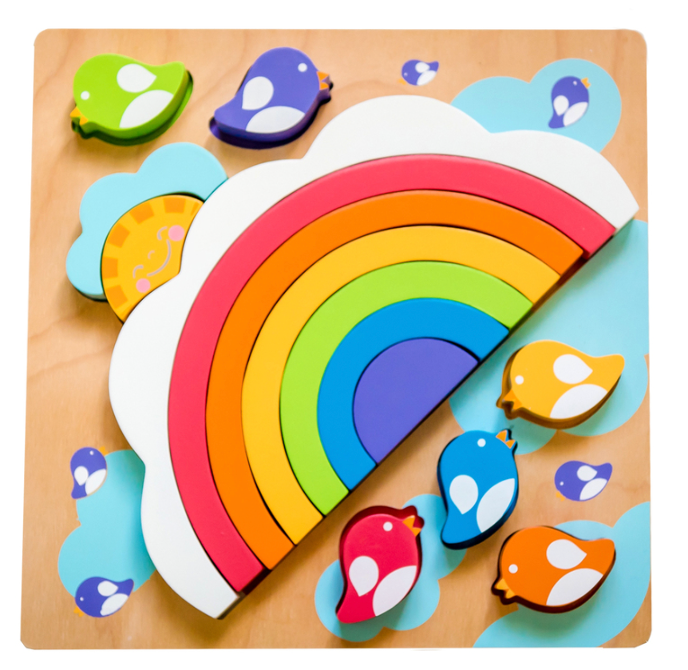 • The pieces can also be used separately away for the puzzle base for building and balancing towers of rainbows or birds or birds on top of rainbows.