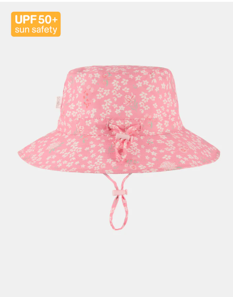 Toshi presents the classic Sunhat Acacia, ideal for children of all ages. The sunhat has a broad and well-structured brim. The UPF 50+ UV rating indicates maximum sun protection. A head tie with toggle creates adjustable sizing. The chin tie with toggle secures the hat for ease of wear. The security release clasp on the chin tie is designed to enhance wearer safety. The classic Toshi Sunhat is crafted from the finest quality 100% cotton and is fully lined for additional comfort.