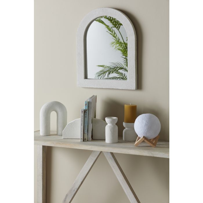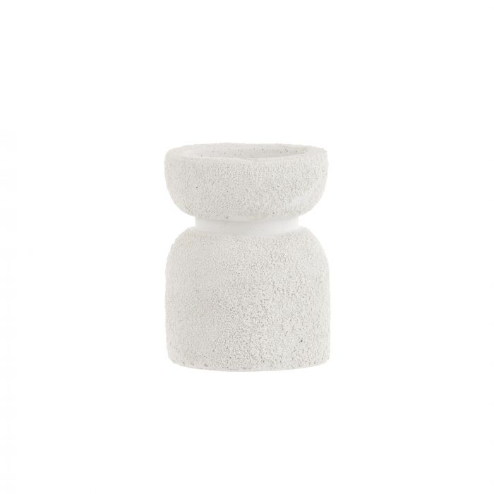 This Emporium Mesaria Candleholder is both stylish and practical. Made from cement with a white sandy textured appearance, it features a wide body and abstract silhouette. Place your favourite candle in it and display in the centre of a table or console for a sophisticated approach. Do not leave the candles unattended. Enrich your home with this stunning Mesaria Candleholder from Emporium.
