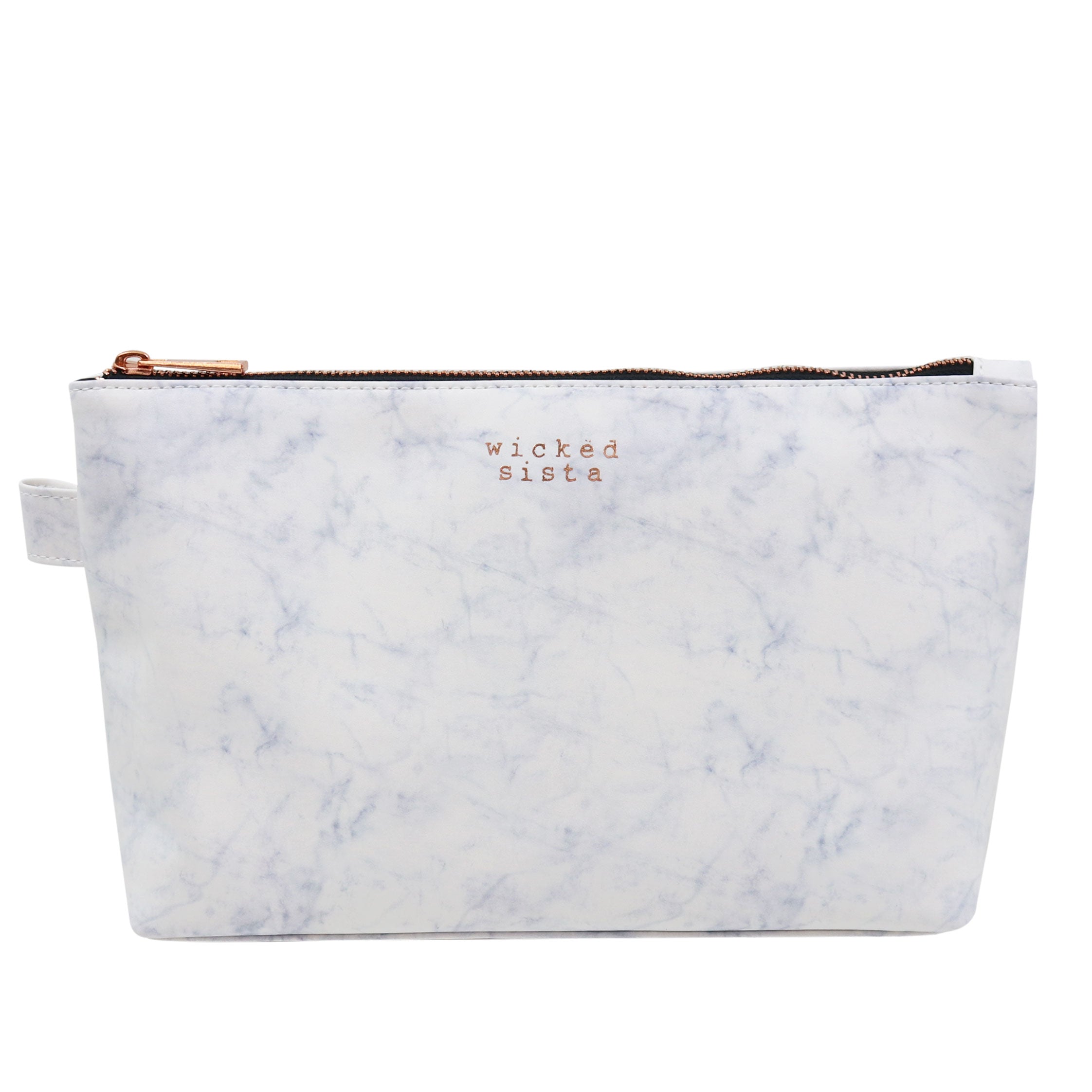 Carry all your everyday toiletry and makeup needs in this large elegant bag.