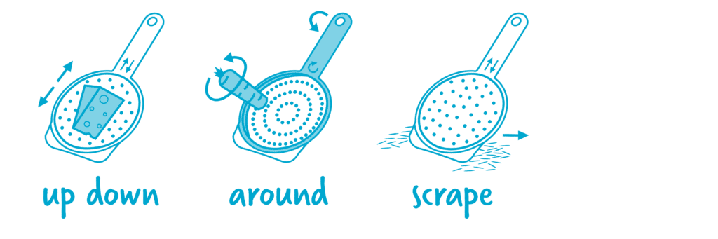Top side blades grate in both an up and down motion for efficient grating, and features an extra-wide plane for large foods like cheese.
