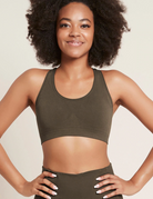 Move your body in our soft and breathable Motivate Racerback Sports Bra. Crafted to provide low-medium everyday support - wear to pilates, yoga and on active weekends. The racerback shape, wide straps and underbust ribbing deliver ultimate comfort while the round neckline provides flattering coverage. Discover the removable padding and four-way stretch mindfully made so you can feel supported and bend and flow freely. Make it a set and style with our Motivate collection.
